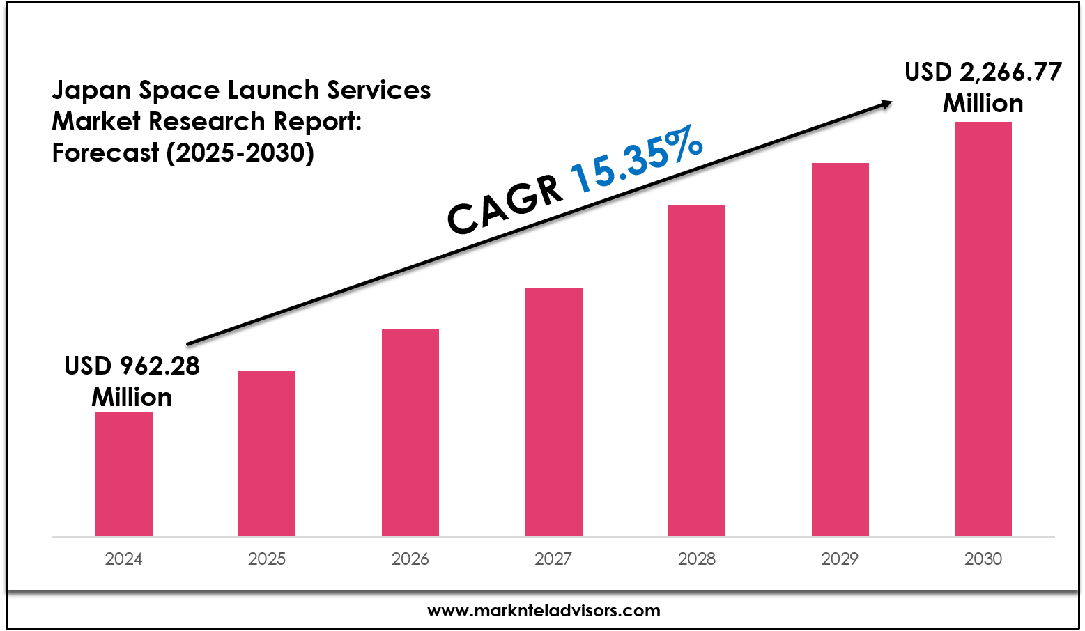 - Japan Space Launch Services market to reach USD 2,266.77 million by 2030.